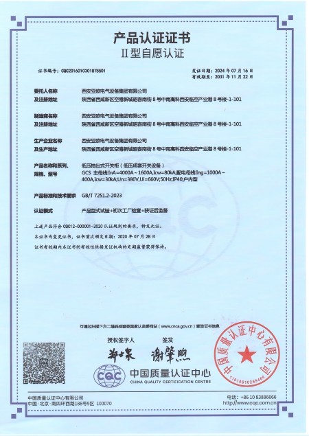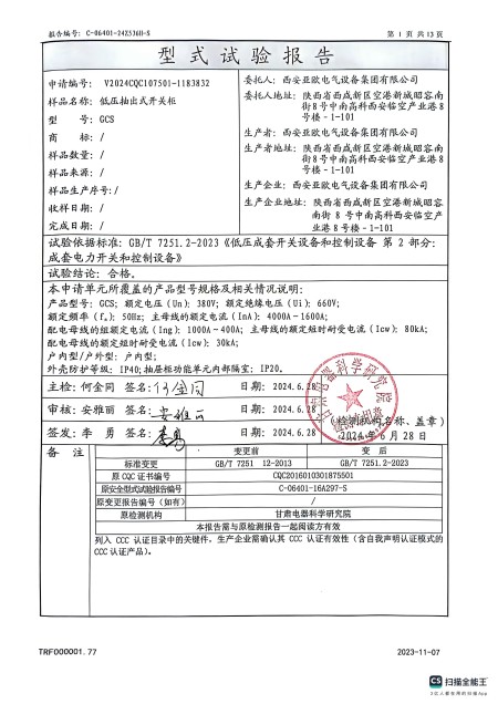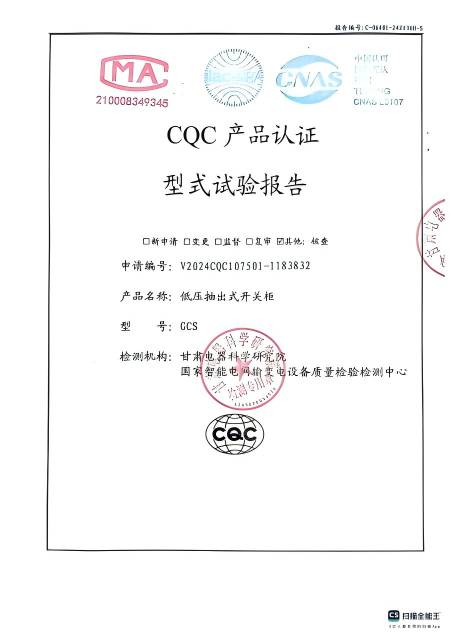 - 關(guān)于我們 - 資質(zhì)榮譽(yù) - 低壓抽出式開(kāi)關(guān)柜(GCS)資質(zhì)